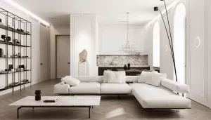 Mẫu trang trí phòng khách nhà cấp 4 đẹp với gam màu trung tính kết hợp nội thất hiện đại