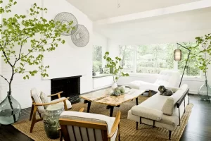 Mẫu trang trí phòng khách nhà cấp 4 với cây xanh
