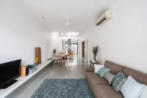 Để phân chia không gian hợp lý, gia chủ cần phải tối ưu nội thất ở phòng khách. Ví dụ kệ tivi có thể tích hợp tủ đựng đồ, bộ sofa có thể tận dụng thành chiếc giường mini. Khi đó phòng khách sẽ rộng rãi và mát mẻ hơn. Bạn sẽ không còn cảm thấy chật hẹp, bức bối nữa.