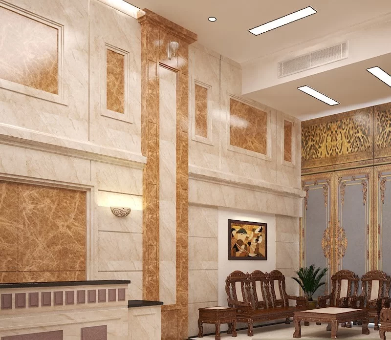 Ứng dụng tấm nhựa PVC vào thiết kế nội ngoại thất hiện đại như ốp trần, tường thang máy, cửa ra vào, tường ,trụ cột